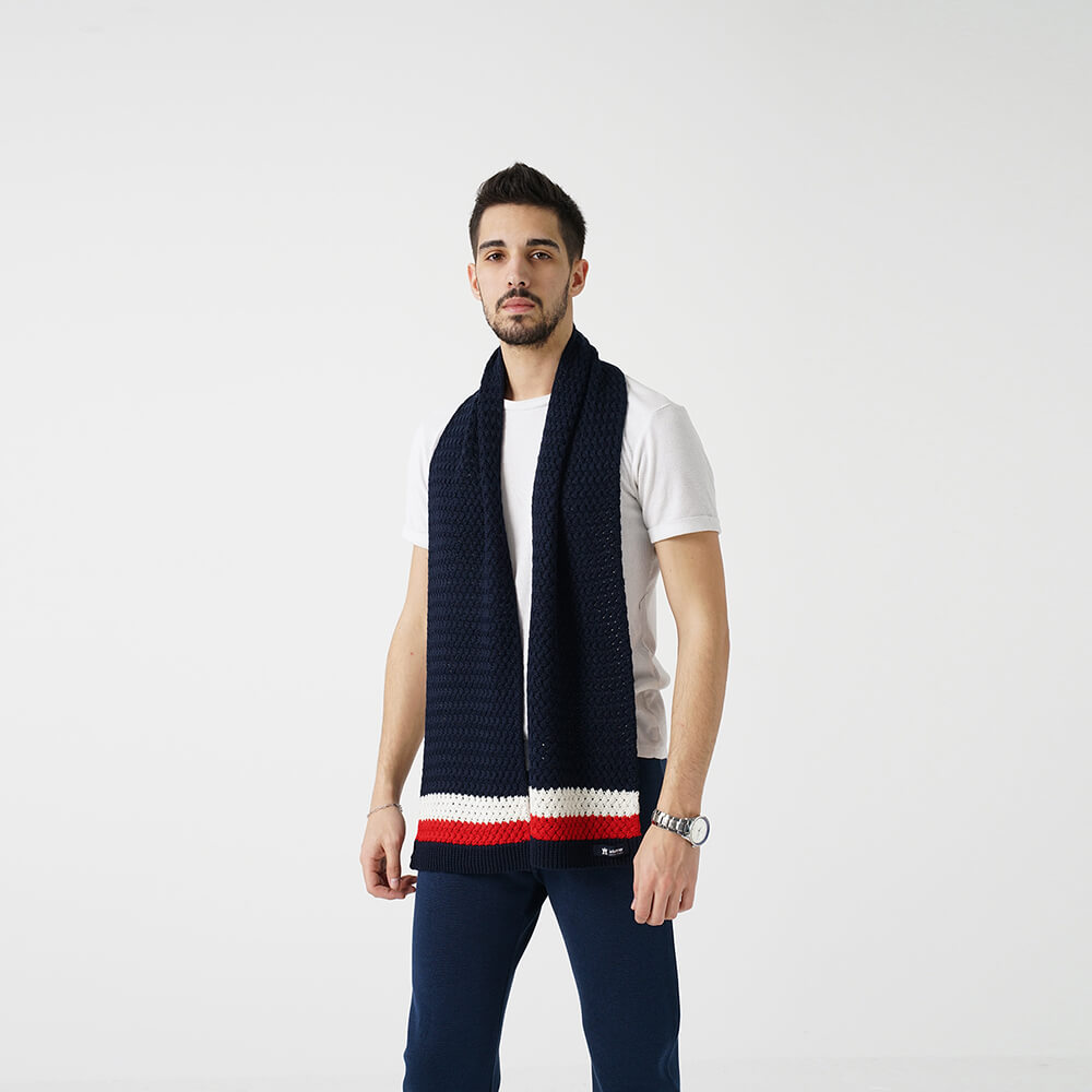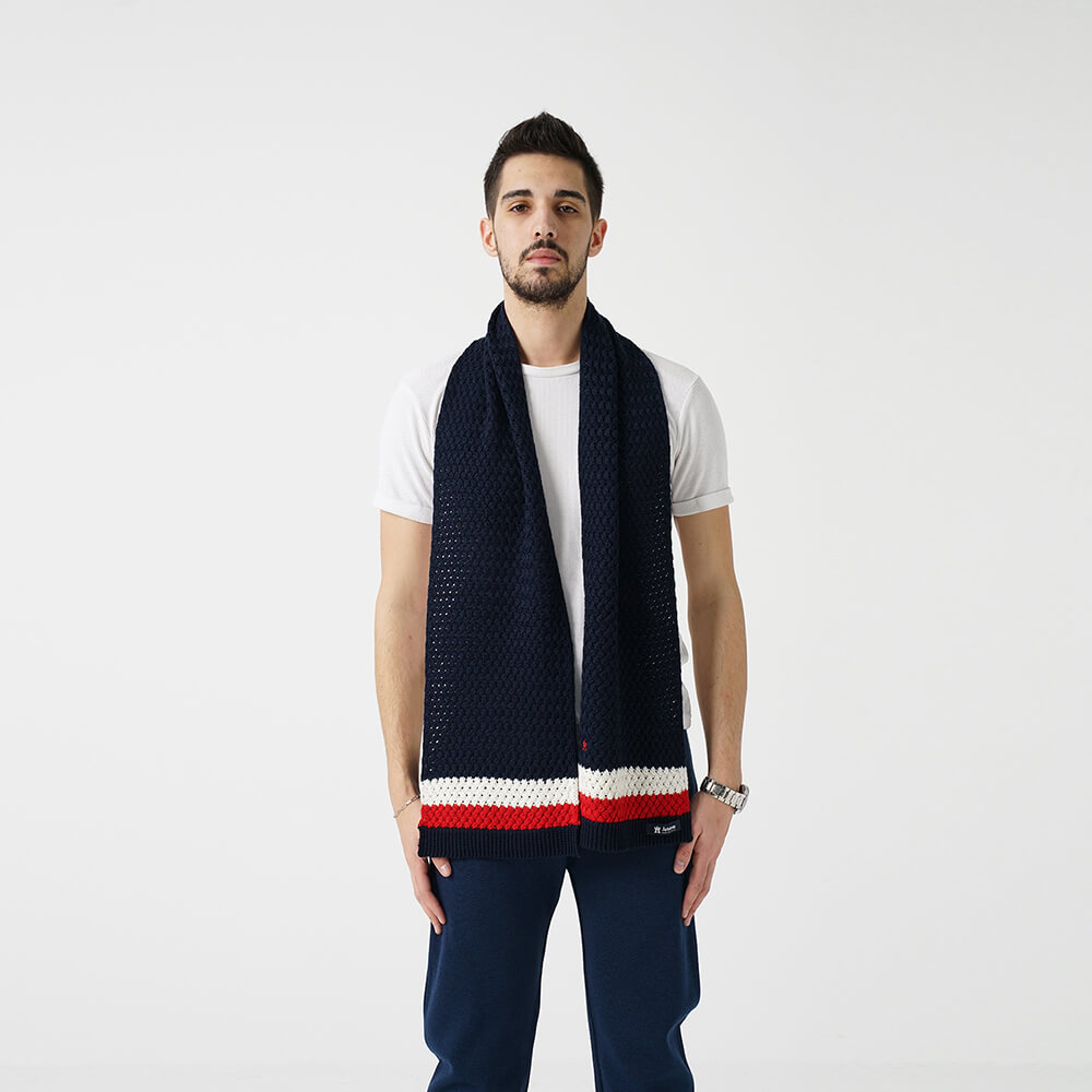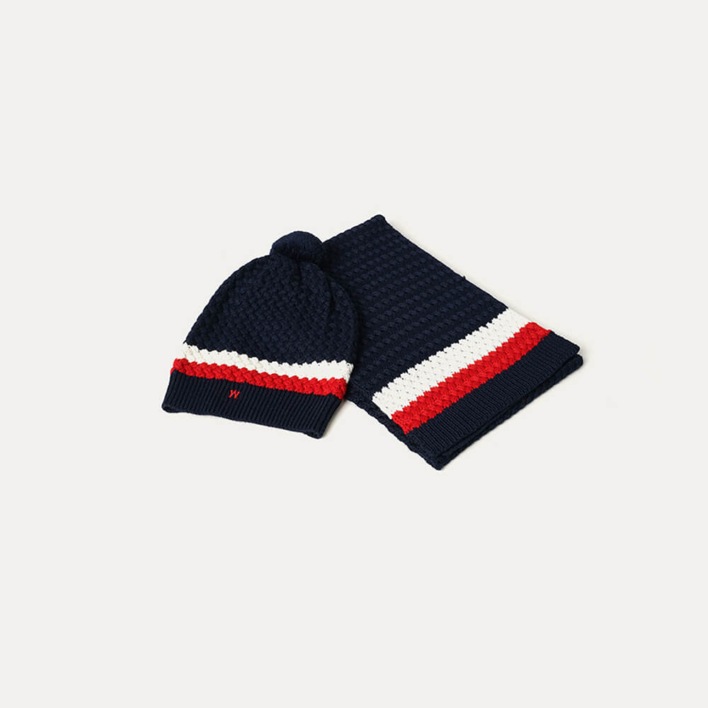 Lacivert Beyaz Çizgili Örme Atkı Bere Takımı