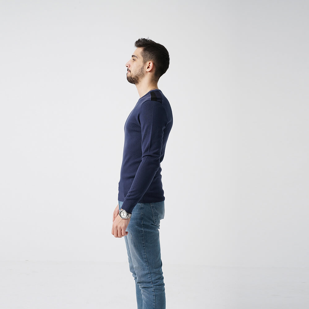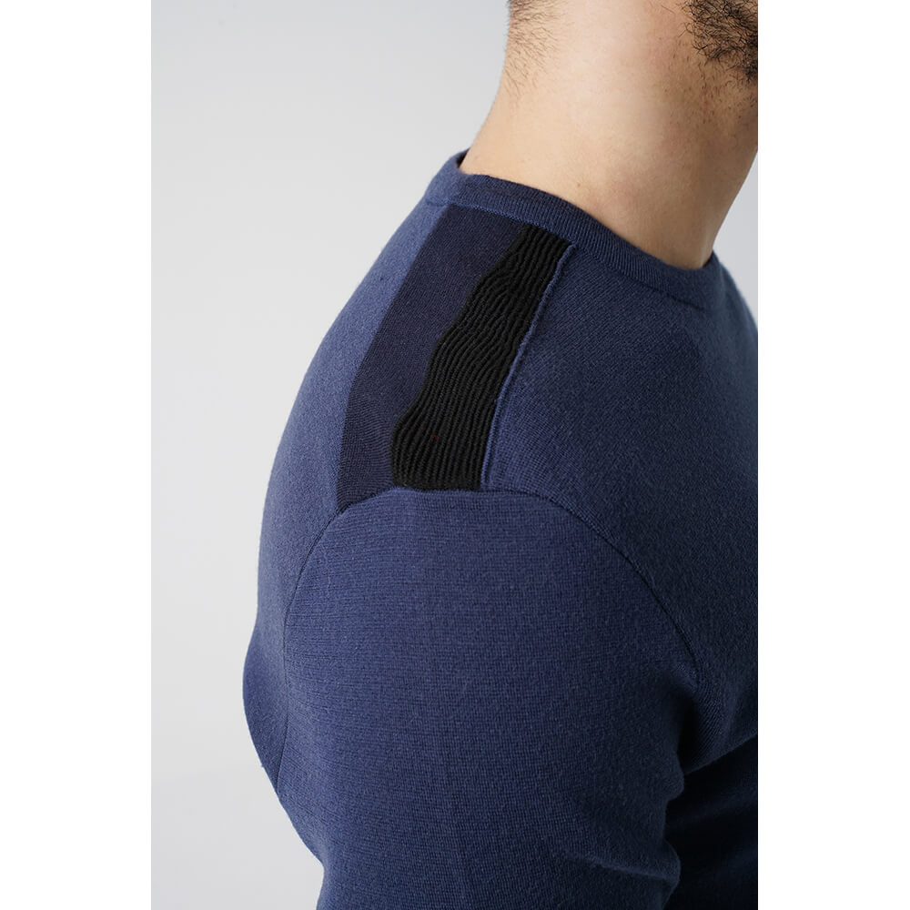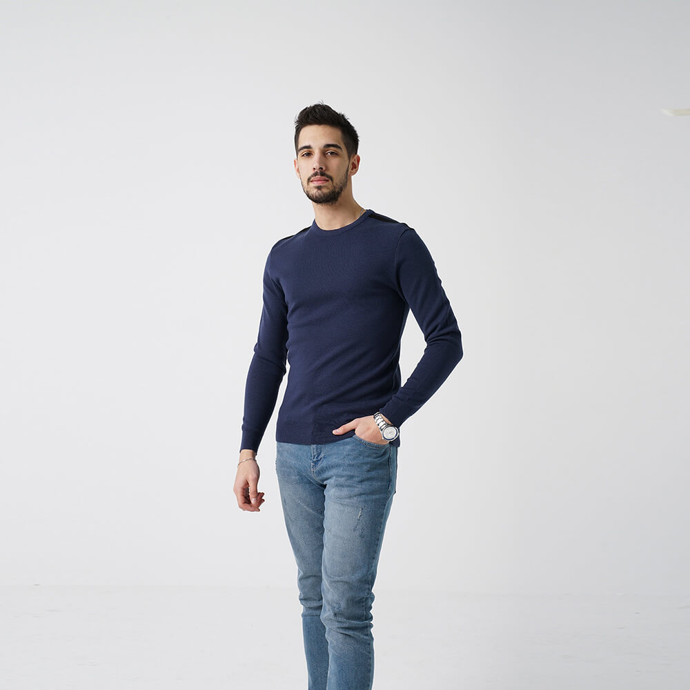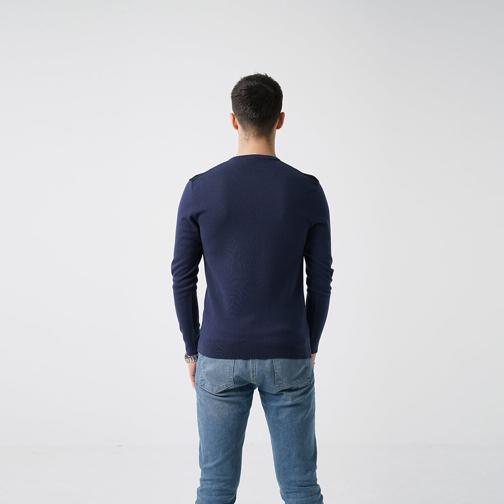 Omuz Detaylı Lacivert Erkek Triko Kazak